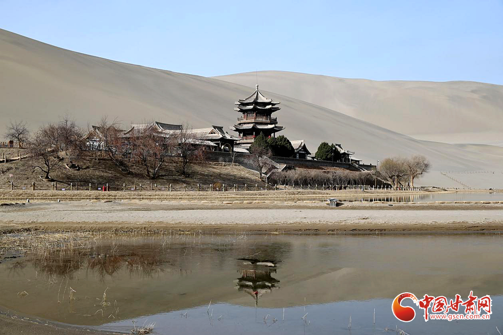 3月8日,隨著氣溫回暖,絲路明珠敦煌迎來(lái)早春勝景。鳴沙山環(huán)抱中的月牙泉冰雪消融,一泓碧水宛如翡翠鑲嵌在大漠之中,呈現(xiàn)出"沙水共生"的奇觀。