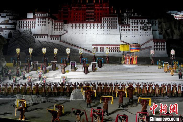 圖為《文成公主》大型實(shí)景劇第十三季演出現(xiàn)場。中新社記者 李林 攝
