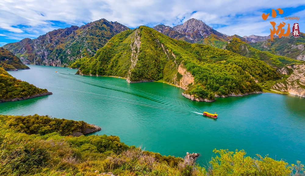 冶力關的群山以原始森林、奇峰異石和湖泊為特色。暖陽下,湛藍的天空映襯著五彩斑斕的群山,綠色與黃色的碰撞下,高原的一切都變得明快起來。