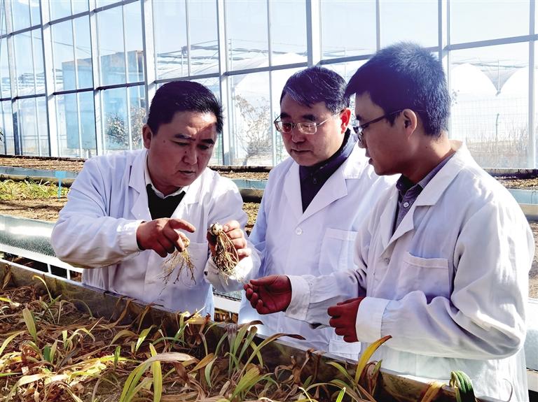蘭州百合優(yōu)質(zhì)種源高效開發(fā)關鍵技術(shù)“揭榜掛帥”項目承擔方查看百合生長情況