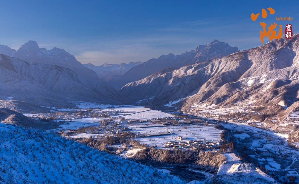 道路、溝壑、樹木、村落,被皚皚的白雪所覆蓋,呈現(xiàn)出一片“雪落山川白,美景入畫來”的美麗景象。